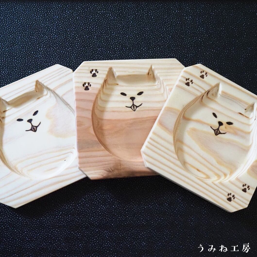 杉の木目を生かしたナチュラルカラーのわんこ型コースターです。
